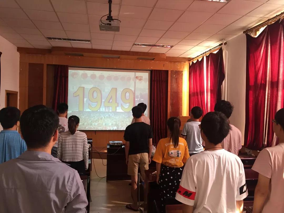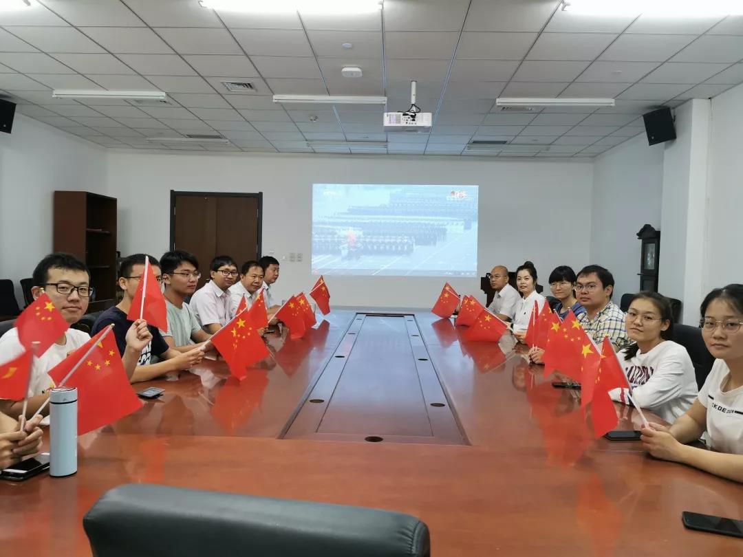 仪式后学院党委组织广大师生以多种形式观看祖国70周年庆典,院党委理论学习中心组带领学生党员代表在北辰机械楼315会议室观看大会盛况。