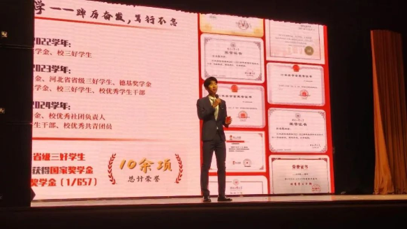 来日征程漫漫,追梦路上始终有光相伴。“少年应有鸿鹄志,当骑骏马踏平川” 是我的座右铭。十佳大学生荣誉不仅是对我过去努力的肯定,也是对未来潜力的期待。我感到无比自豪,同时也认识到这份荣誉背后,是无数个日夜的辛勤付出和不懈追求,是老师们的悉心教导和无私帮助,是家人们的默默支持和无条件的爱。有幸进入kaiyun体育网页登录入口,勤慎公忠的校训如明灯指引我前行,我将牢记当代青年肩负的使命,带着对国家、对社会的热忱与责任心,在求学路上集青年之思、发青年之声、展青年之风!
