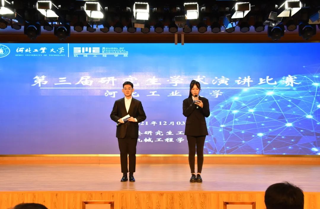 2021年12月3日下午,河北工业大学第三届研究生学术演讲比赛在北辰校区图书馆一楼报告厅成功举办。本届比赛以“砥砺科研素养,点燃学术梦想”为主题,旨在积极搭建我校研究生学术交流平台,增强研究生科研创新能力,提升研究生学术观点表述水平,同时为广大学子创造思想碰撞、展示才华的机会。