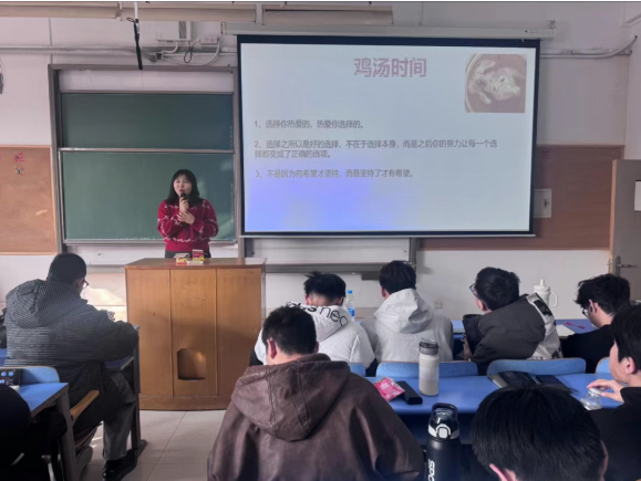 为帮助大二学生纾解迷茫情绪、提升自主规划能力,3月7日上午8点,学院心理辅导员胡文琳老师在教学楼A106进行“大二了,感觉有点‘悬空’?——聊聊如何稳稳接住自己的大学选择”专题讲座,2024级学生代表参加。