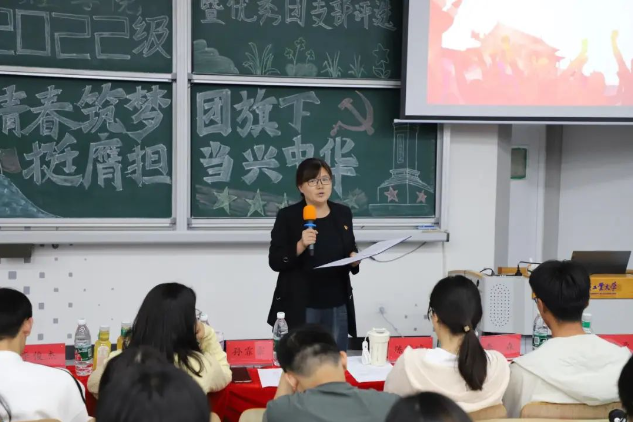 青春筑梦,挺膺担当。10月18日14:00,爱游戏ayx体育2022级先进班集体暨优秀团支部评比活动在教学楼B115举行。爱游戏ayx体育辅导员孙霏霏、陈眯眯、刘魏、李森,研究生会主席李俊杰,化工学院团委副书记杨之豪,材料科学与工程学院团委学生会执行主席耿博轩出席活动。
