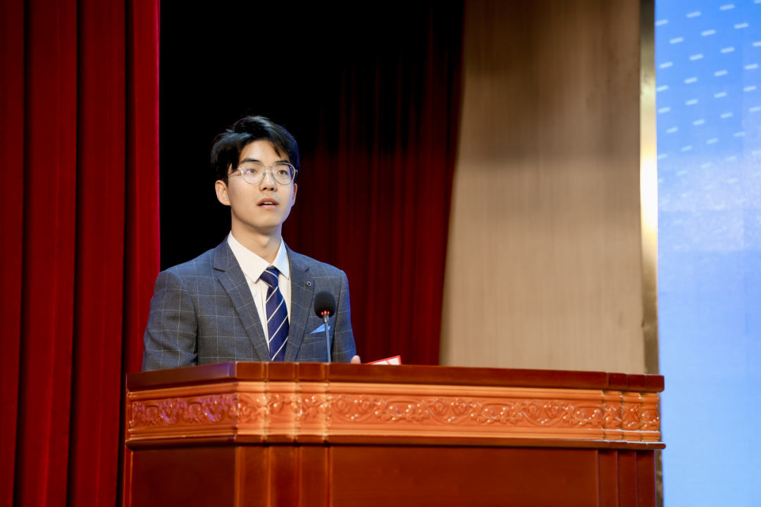 图5 参赛选手代表河北工业大学李宣瑾同学宣誓