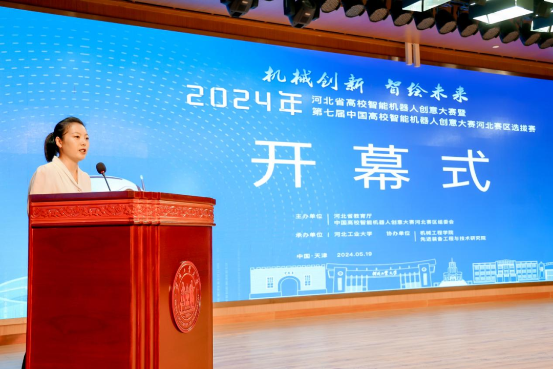 2024年5月19日,河北省首届高校智能机器人创意大赛暨第七届中国高校智能机器人创意大赛河北赛区选拔赛在河北工业大学体育馆举行。校党委常委、副校长赵斌、校团委书记赵颖颖、本科生院院长张小俊、kaiyun体育网页登录入口党委书记杨占力、kaiyun体育网页登录入口院长赵丽滨、先进装备工程与技术研究院常务副院长兼kaiyun体育网页登录入口副院长甄冬、kaiyun体育网页登录入口党委副书记兼副院长王素丹、kaiyun体育网页登录入口副院长王刚,以及河北省高校智能机器人创意大赛评委、河北省各参赛高校师生代表出席了开幕式。开幕式由kaiyun体育网页登录入口院长赵丽滨主持。