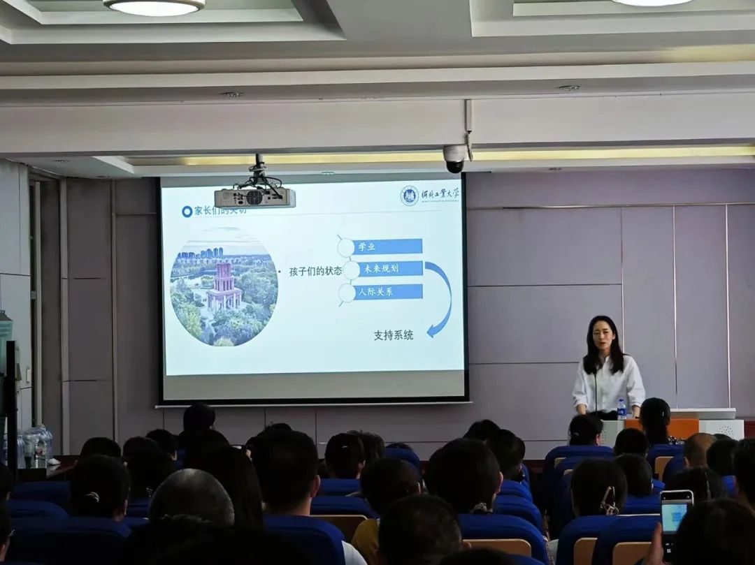 “家长学校”以亲子关系为主题,段明洋老师以专题讲座的形式与家长交流了家庭教育知识和技能,指出了大学阶段容易出现的几类问题,并结合心理学知识提出了建立良好亲子关系的几个实用的沟通技巧,在如何尊重和关爱孩子等方面达成了共识,积极营造了学生良好的成长环境。