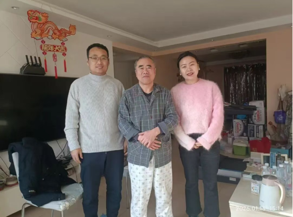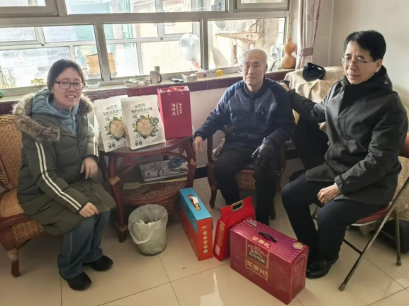 走访过程中,慰问组每到一户,都与老教师们围坐相谈,聆听过往故事,共话学院发展。院领导详细询问老教师的身体状况和生活情况,并围绕过去一年学院在学科建设新突破、科研平台升级、青年教师培养等方面取得的进展进行深入交流。