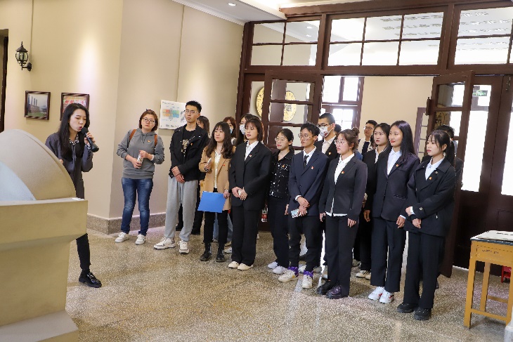 紧接着,在讲解员的带领下师生参观了学校历史风貌建筑第五教学楼和团城。