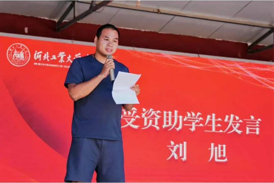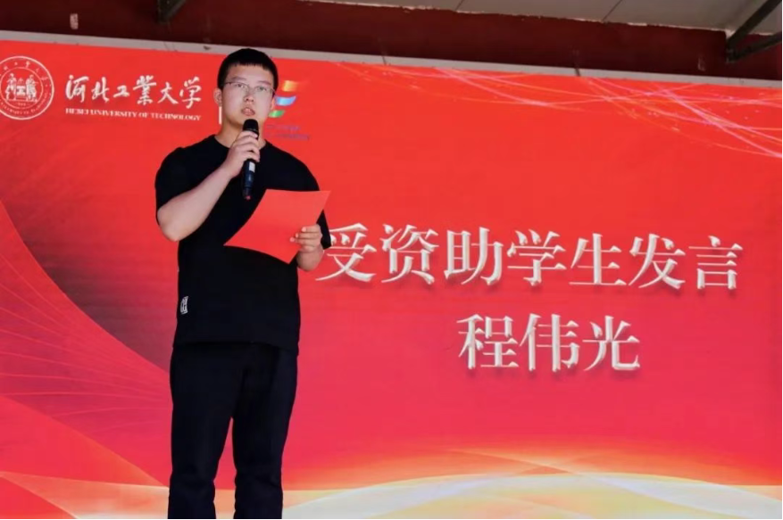 受资助学生代表刘旭、程伟光讲述了自己与大学生们相处的点滴时光,明白了“知识改变命运”,大学生的鼓励增强了学习动力,呼吁水泉村的孩子们要相信坚持的力量,努力学习,实现自身的价值。