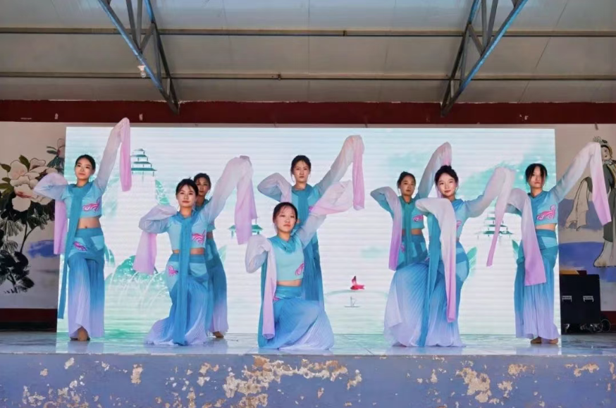 在乡亲们热烈的掌声中,文艺演出拉开序幕。师生精心准备了歌曲、舞蹈、相声等节目,展现了青春活力,表达了对水泉村的深厚情感,赢得台下观众阵阵掌声。