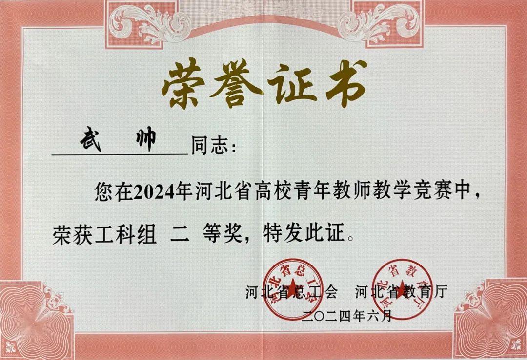 喜报 -武帅老师获河北省高校青年教师教学竞赛二等奖