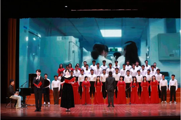 歌声嘹亮,唱响青春。喜迎新中国成立75周年,从中国制造到中国智造,工业强国,实干兴邦。新时代的我们,生而逢盛世,青年当有为,机械学子当立鸿鹄之志,坚守初心,砥砺前行,保持青春热情,不负使命荣光。合唱团用嘹亮的歌声深情表达为梦想奋斗的展望,赢得了阵阵掌声。