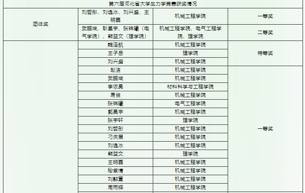 8月21日,第六届河北省大学生力学竞赛“理论设计与制作”团体赛在石家庄铁道大学举行,kaiyun体育网页登录入口2支代表队参加比赛,获河北省团体一等奖1项,团体二等奖1项。此前学院组织校内学生参加第六届河北省大学生力学竞赛个人赛,获得特等奖3项,一等奖15项,二等奖25项,三等奖26项,创历史最好成绩。