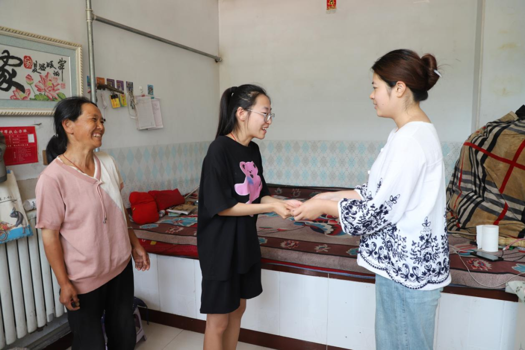 孩子们作为义务领路的小向导,带领实践队员一早走访了水泉村第一组、第五组与第七组村民。每到一户,家中的老人、孩子都热切地迎上来,拿着提前洗好的水果热情的招待。再见到时隔许久的帮扶对象,实践队员亲切地与之握手交谈,了解他们的生活学习情况,并为孩子们送上助学金,希望通过我们的微薄之力帮助孩子们解决困难,激励他们好好学习。