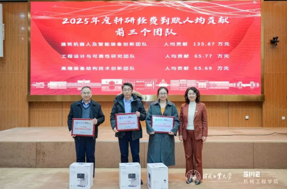 表彰环节,学院对科研经费贡献突出的团队与个人,以及在教育教学领域取得优异成绩的教师进行表彰,学院领导为获奖代表颁发奖牌、奖杯以及纪念品。