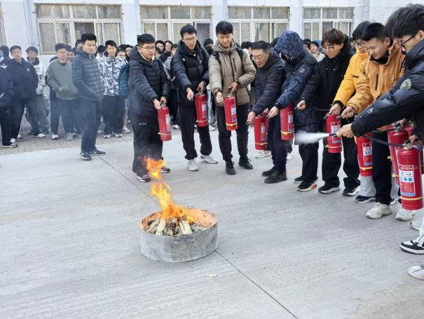 集结后,吕卓军老师结合典型案例,剖析火灾危害,普及防火灭火常识与消防设施使用方法。随后,学生以十人小组为单位,在消防人员辅助下,按规范流程使用灭火器扑灭人造火焰,完成灭火实战演练。