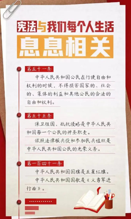 2024年12月4日是我国第十一个“国家宪法日”,12月1日至12月7日是第七个“宪法宣传周”,今年“宪法宣传周”主题为:“大力弘扬宪法精神,推动进一步全面深化改革”。